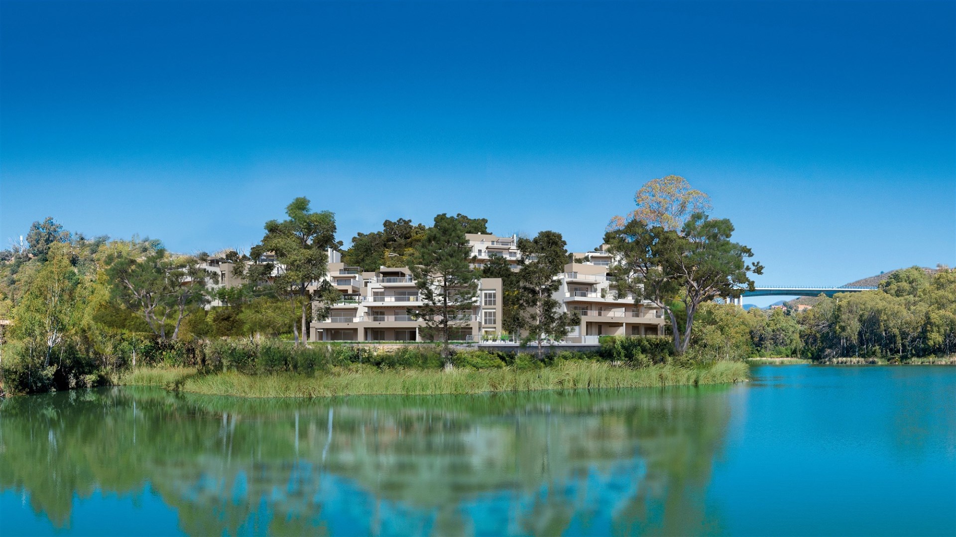 Marbella Lake położone jest w uprzywilejowanej pozycji na wzgórzu z najlepszymi panoramicznymi widokami na zbiornik wodny Viejo del Angel, wybrzeże Marbelli i pola golfowe w Los Naranjos, Las Brisas i Aloha. Położony w La Cerquilla w obszarze Nueva Andalucia, słynie z cichych uliczek i wyjątkowej atmosfery, w otoczeniu luksusowych domów i willi.